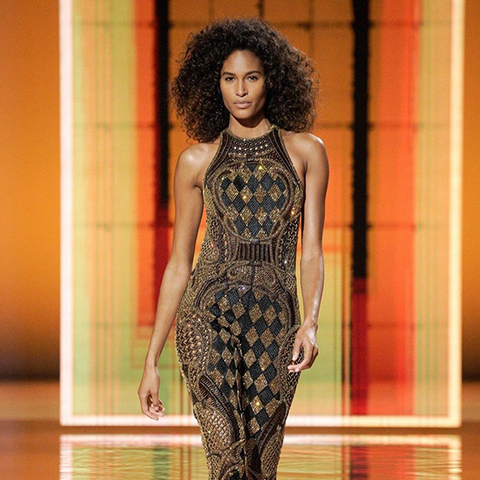 She also gives us this sparkling pro tip: For some drama, add a few subtle jewels to the eyes. “Adding a little glimmer to your bold lip is a nice balance, but still fun for a holiday event.”